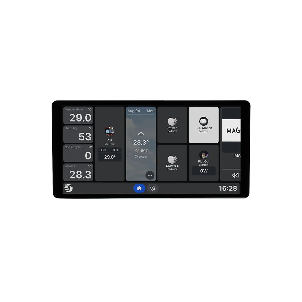 Pametni upravljački panel za pametni dom s 6,95” zaslonom u boji osjetljivim na dodir, ultra-brzim četverojezgrenim procesorom i izmjenjivom bazom napajanja. Uključena baza napajanja ima jedan izlaz za upravljanje jednim električnim krugom.